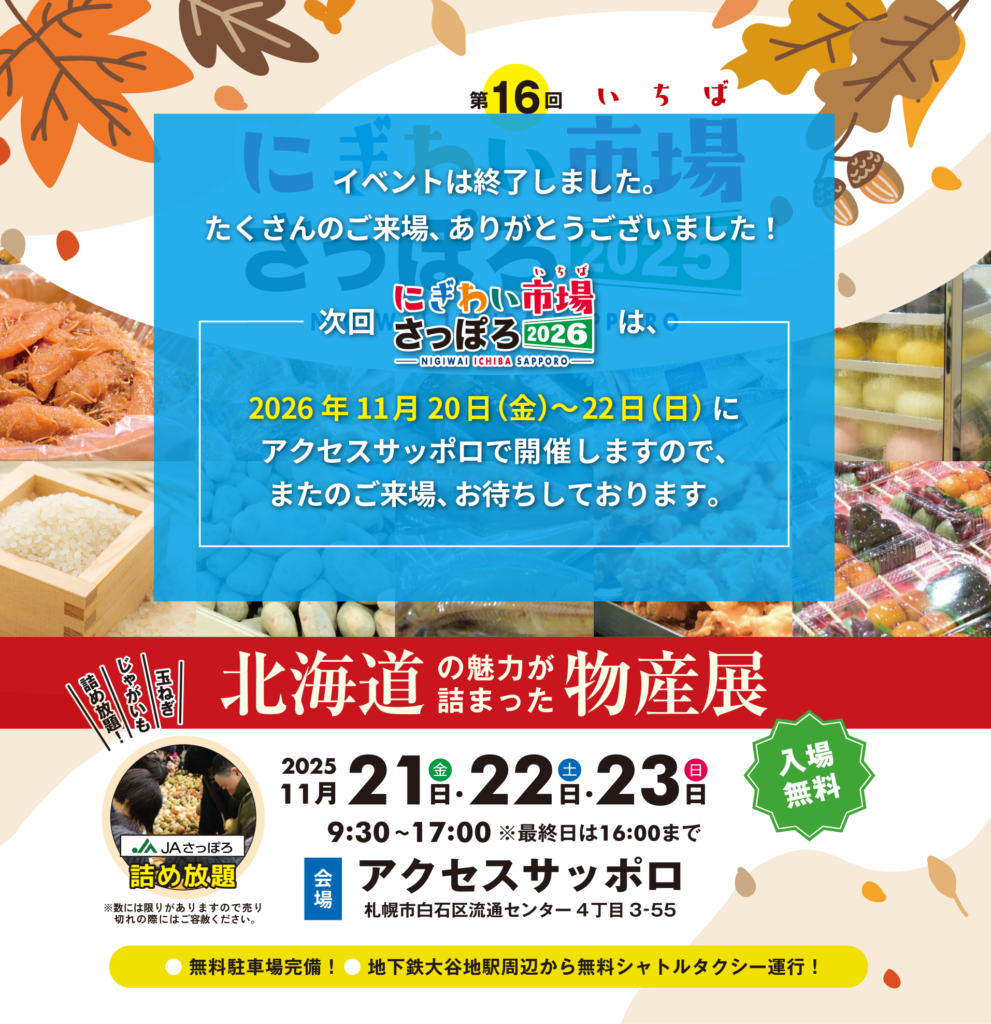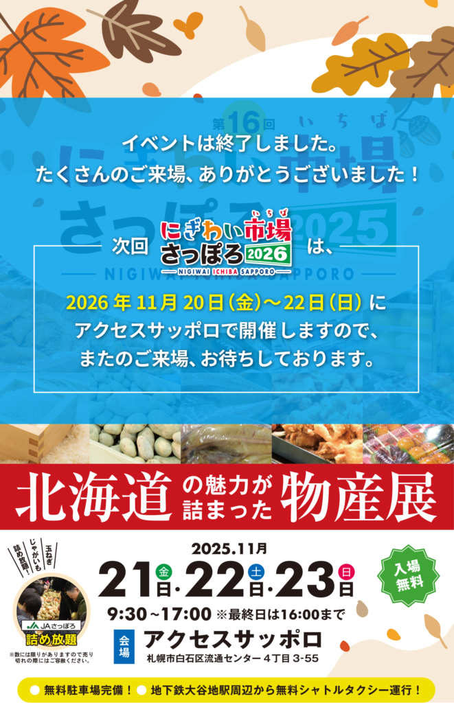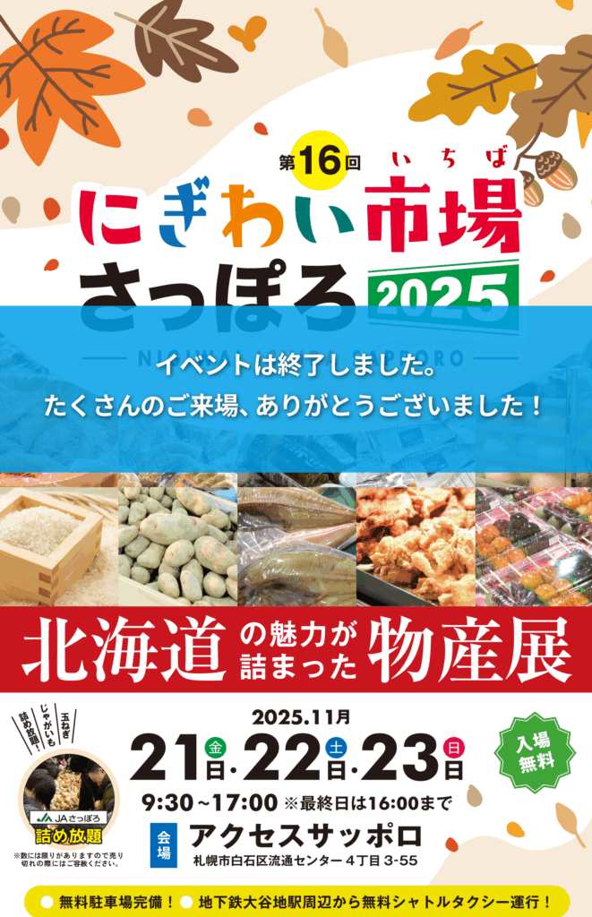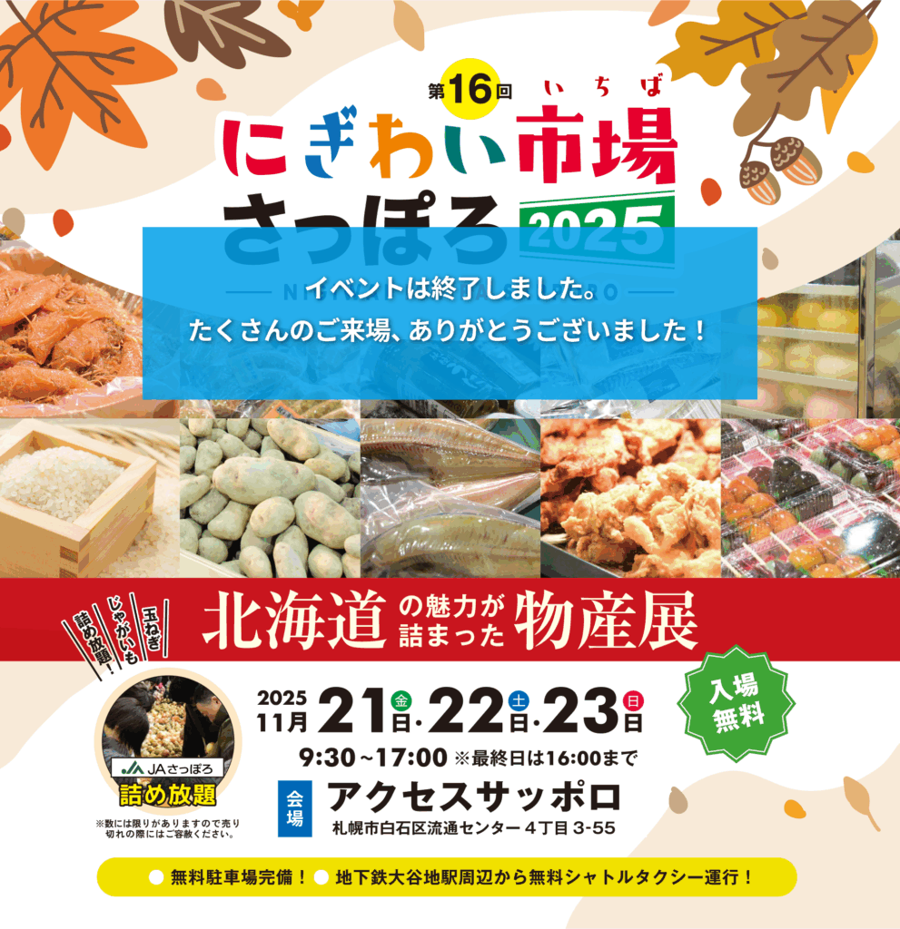▶︎アクセスサッポロ発→大谷地駅着10:00〜17:30(最終日は16:30まで)
